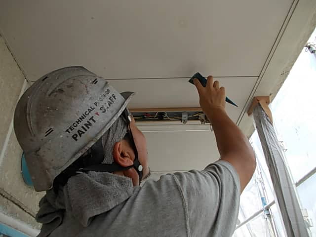 3階の軒天井は、弊社で屋上防水をするまで、ひどい雨漏りでした。