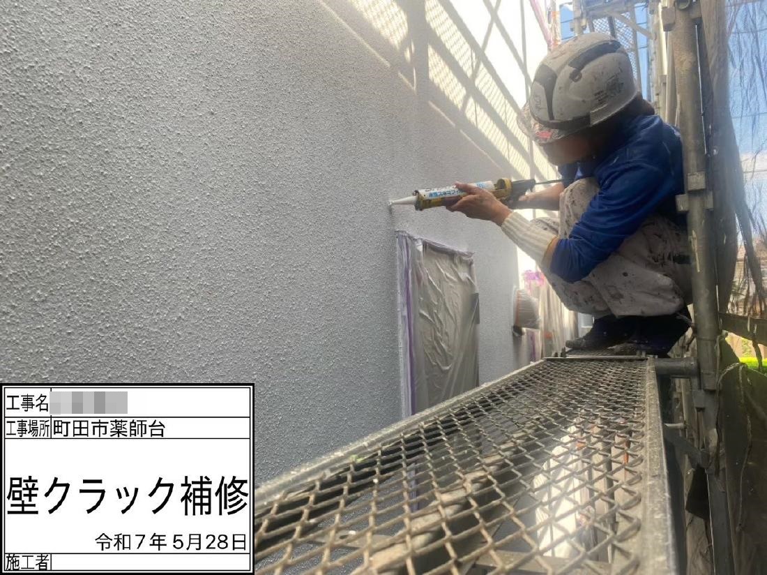 外壁のクラックを処理せずに、仕上げて完了しています。