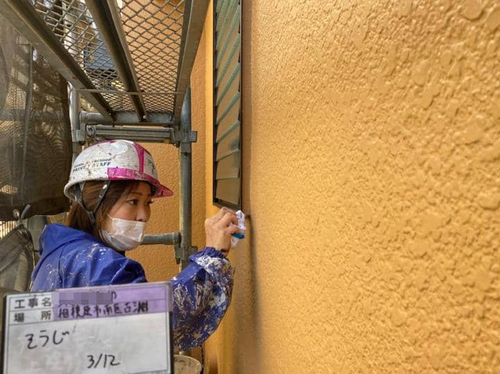 | 【外壁塗装】 上塗りは中塗りがしっかり乾いたら塗布量をしっかり確認しながら施工します |