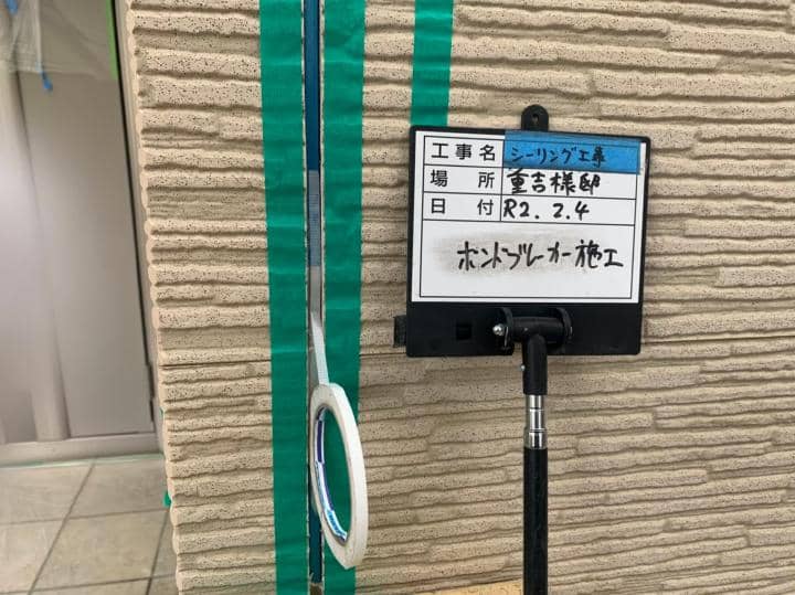 【シーリング工事】 縦目地の収縮目地の古く硬くなった シーリングは全て撤去し3点接着にならないようにボンドブレーカーを施工しておきます |