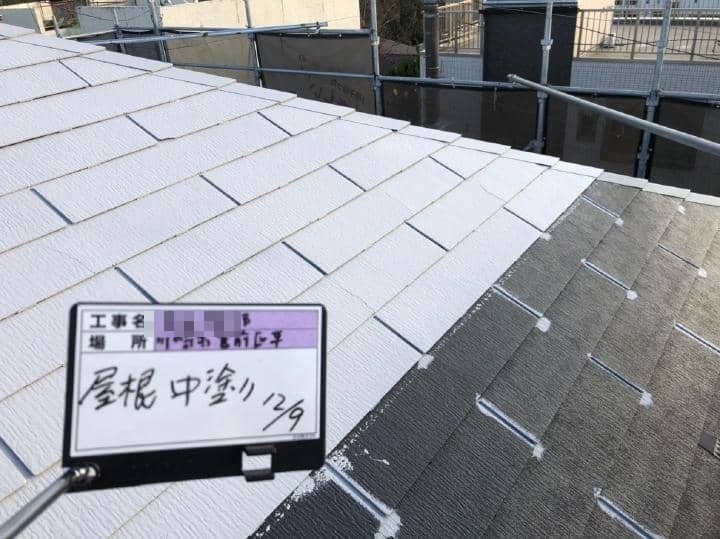 【屋根塗装】 遮熱仕上げ材の2回目仕上げ塗装です |
