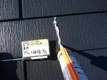 | 屋根にクラックが・・・ | クラック程度であれば、差し換えたりせずウレタンシールをてんこ盛りして補修修繕して塗装で仕上げます |