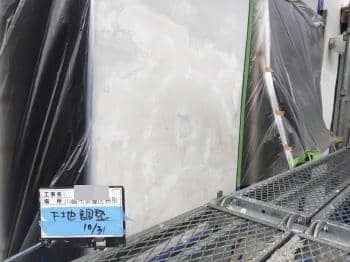 | 外壁にシリコーンシーラントなどが打ってあると塗膜が食いつきませんので、専用のプライマーを塗布しておきます | やっと外壁のシーラーを塗布。 |