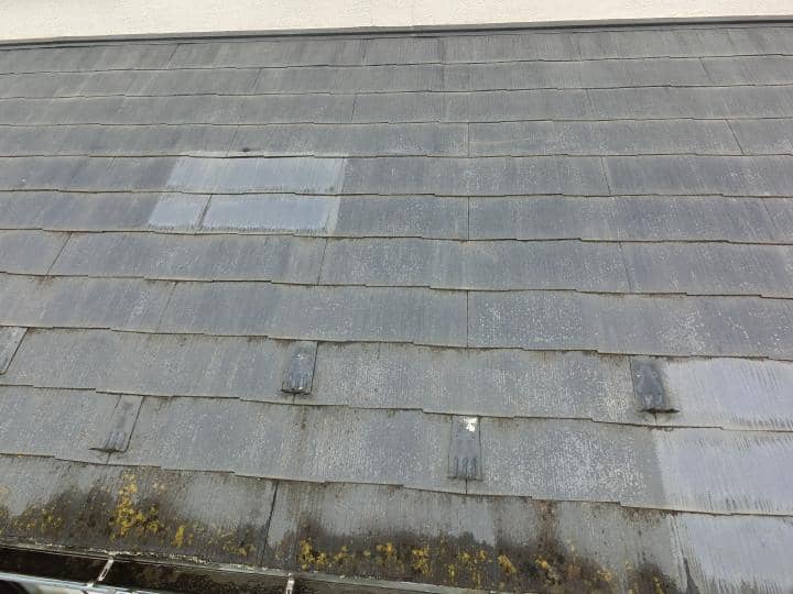 | 【屋根塗装】 屋根材の貼り付き除去作業で細かいゴミやホコリ等が発生していますので塗装の前に清掃を行います |
