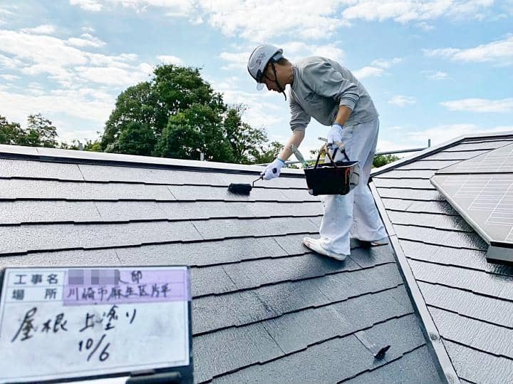 【屋根塗装】 遮熱仕上げ材の2回目仕上げ塗装です |